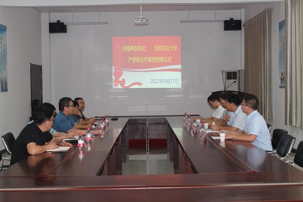 本网讯(通讯员 刘超齐)9月17日下午,黄网与河南神农膨化饲料科技有限公司举行产学研合作授牌仪式。院党委书记贾磊、动物营养与饲料科学系主任陈文教授、青年教师刘超齐、郭永鹏及神农膨化董事长董鹰隼、副董事长张良玉和企业部分高管出席授牌仪式。