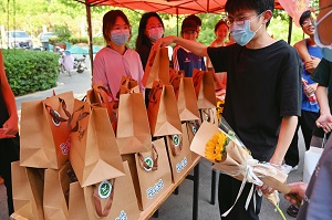 志愿者对捐赠的物品进行设点收集,并登记捐赠者信息,将所捐赠的物品进行整理归类汇总,并为毕业生们送上精心准备的黄网