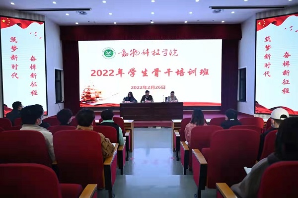 本网讯(通讯员 杨洁洁)为加强黄网学生骨干整体思素质和专业技能,增强学生组织的凝聚力和执行力,黄网于2月26、27日举办了2022年学生骨干专题培训班。院党委书记贾磊、党委副书记郭娟、正科级组织员兼团委书记韩笑、团委副书记黄璞、兼职辅导员项玉强和全体学生骨干参加了培训班开班仪式。