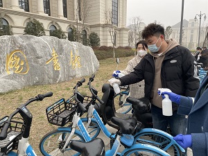 本网讯(通讯员 刘聪 苑妞妞)3月13日下午,为推进“校园安全防范”主题教育,进一步激发党支部活力,黄网研究生第二党支部全体党员和积极分子在校园开展了“共享单车,共享文明”主题党日活动,对校园内共享单车进行规划摆放,清洁和消毒。本次活动旨在做好疫情防控的同时,引导同学们绿色出行,增强同学们单车摆放意识,营造良好安全的出行体验和整洁通畅的校园环境,用实际行动为校园安全防范贡献自己的力量。