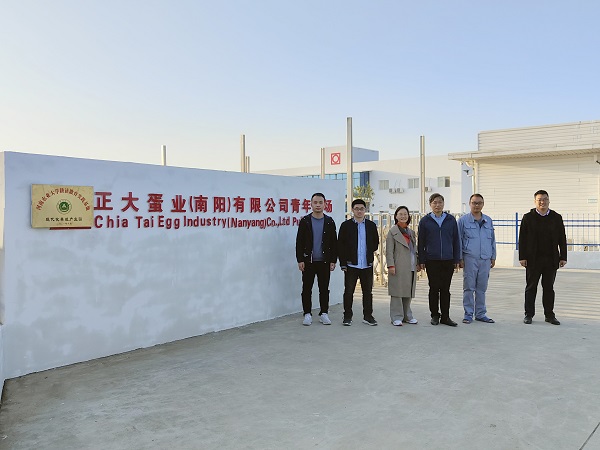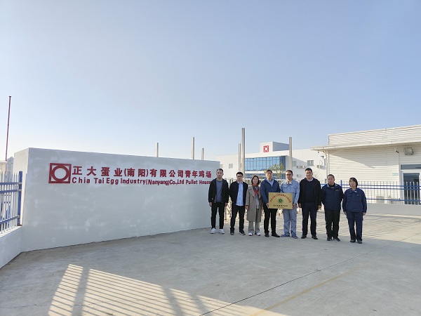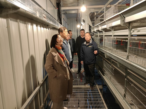 南阳正大蛋业有限公司总经理徐显锋带领陈文教授一行参观青年蛋鸡场