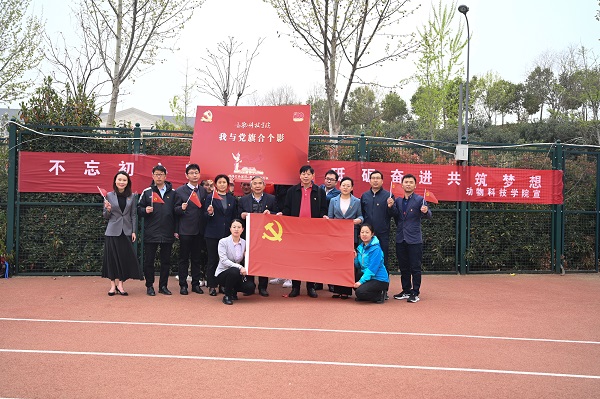 师生与党旗合影留念