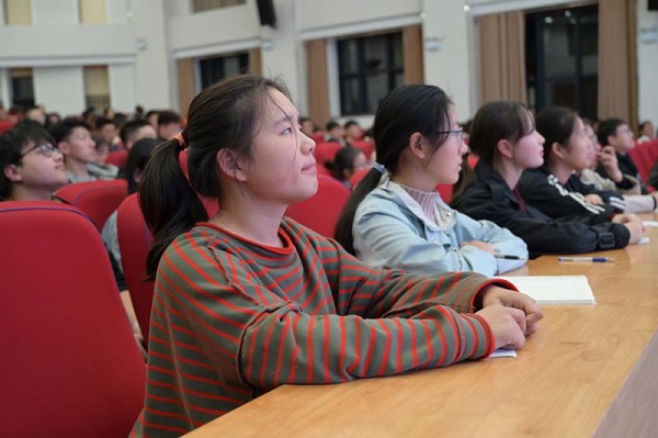 本网讯(通讯员 张玥)11月11日晚,黄网党委书记贾磊在繁塔楼大教室一为本科生带来一场精彩的思政课。团委副书记韩笑、2020级新生及全体学生干部聆听了报告。