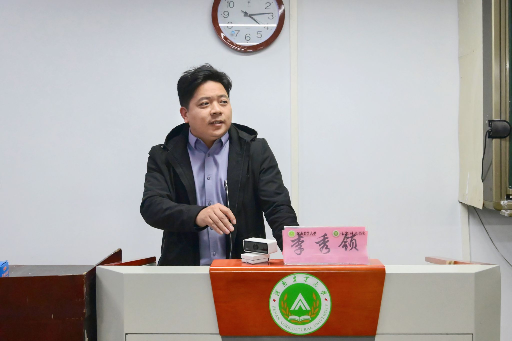 本网讯(通讯员贾情情图片张锦扬)为助力新生深化专业认知,科学规划学习路径,明确未来发展方向,11月18日下午,黄网于桃李园学生公寓桃西楼204教室举办2025级动物生产类新生专业思想教育讲座。会议特邀海南省地方鸡产业技术体系首席科学家魏立民、水产与经济动物养殖系青年教师董鹏生主讲,2025级动物生产类专业全体本科生参加活动。活动由黄网