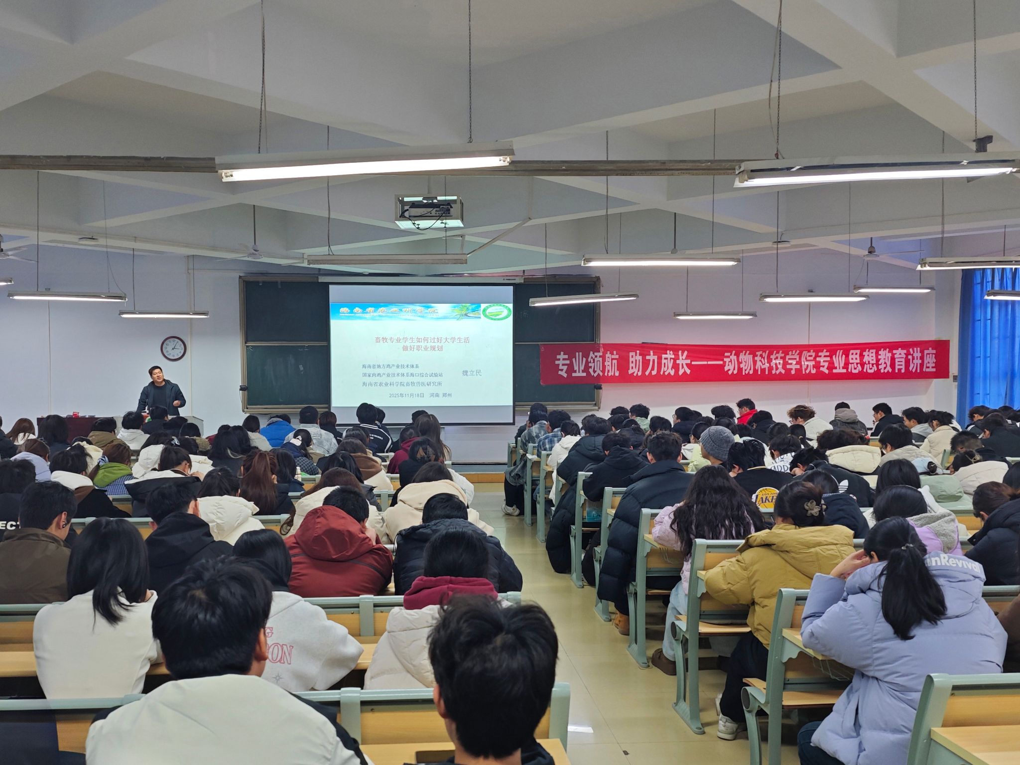 魏立民从分析新生选择动物生产专业的初心出发,结合自身求学经历和行业实际案例,围绕专业学习方法、大学生活规划、职业发展路径等多方面展开深入分享。他以自身成长历程和从业心得体会为例,鼓励同学们树立热爱专业、深耕学业、坚持创新的理念,并从专业角度阐释了明确人生目标、夯实学业基础、提升硬软技能、丰富成长体验对大学生涯的重要性。