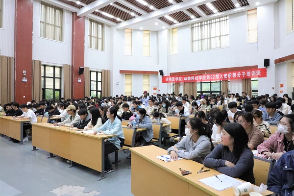 于龙子湖校区繁塔楼大教室五联合举办了第52期入党积极分子培训班。黄网党委副书记郭娟、辅导员赵姝灿,动物医黄网