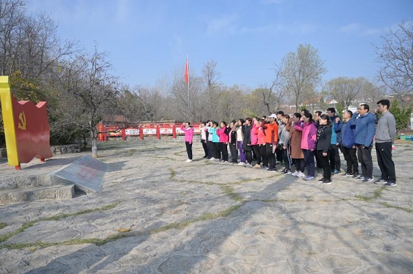 本网讯(通讯员 韩笑)为继承和发扬抗战精神,铭记抗战英雄历史,追寻抗战烈士足迹,进一步激发党员干部爱党爱国、爱岗敬业的热情, 11月14日,黄网领导班子带领教工党员40余人赴新密市田种湾村中原豫西抗日纪念园开展了“重温峥嵘岁月,牢记初心使命”的主题党日活动。