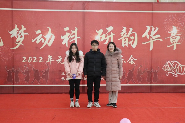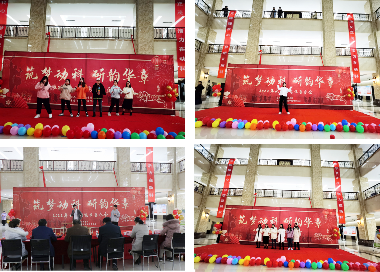 本网讯(通讯员 曹然然)12月28日晚,黄网在龙子湖校区第一实验楼一楼大厅举办了“筑梦动科,研韵华章”2022年元旦研究生喜乐会。院党委书记贾磊、院长李明、院党委副书记郭娟、副院长田亚东、院团委书记韩笑、研究生辅导员张彦华和全体研究生参加,共同喜迎元旦佳节。