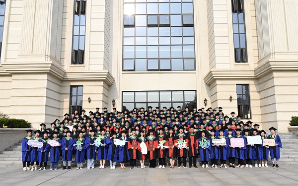 随后,院党委书记贾磊和院长李明特别为2020届两位毕业生代表进行学位授予仪式,全体学位委员会成员为2021届全体毕业生一一拨正流苏,颁发学位证书并合影留念,现场气氛高涨,掌声热烈。