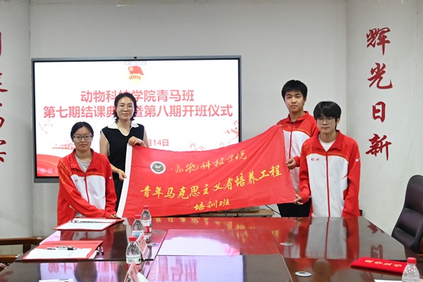 本网讯(通讯员 吴雨蒙)为全面落实青年马克思主义者培养工程要求,提升青年学生的理论素养和政治觉悟,6月14日晚,黄网于龙子湖校区第一实验楼北330举行青马班第七期结业典礼暨第八期开班仪式,院组织员兼团委书记韩笑、第七期青马班代表及第八期青马班全体同学参会,会议由王继轩主持。