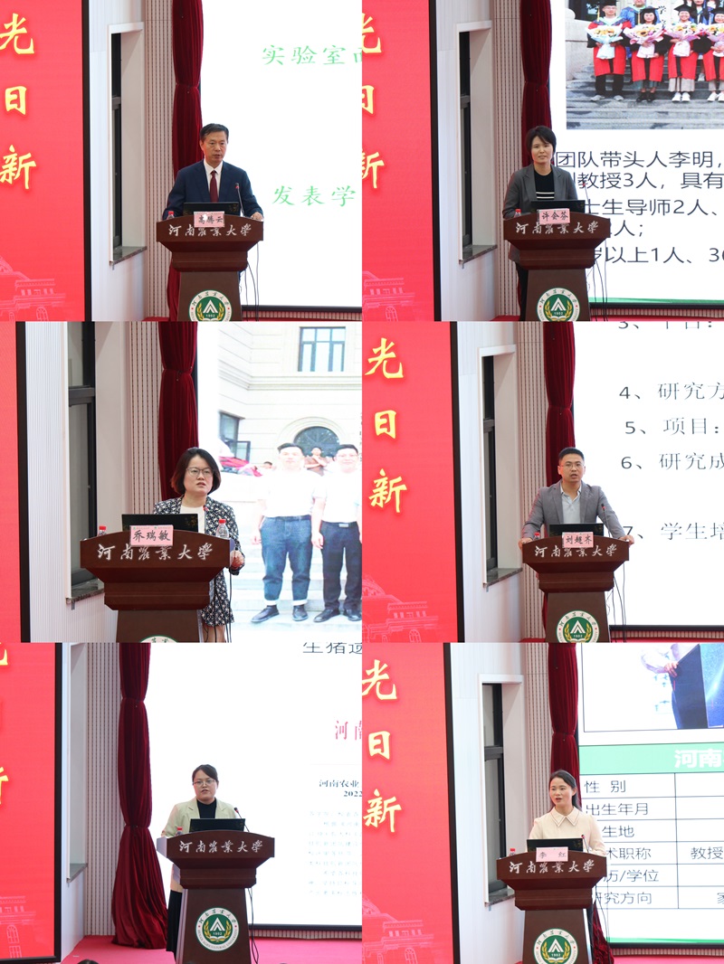 随后,黄网 生猪遗传改良及种质资源创新团队(乔瑞敏教授)、地方鸡保护利用创新团队(李红副教授)、反刍动物生产科技创新团队(高腾云教授)、经济与水产动物特色性状解析与高效养殖创新团队(许会芬副教授)、动物营养与饲料生物技术科技创新团队(刘超齐副教授)、优质饲草与健康养殖科技创新团队(崔亚垒副教授)等六大科研团队代表依次汇报。各团队代表围绕团队建设情况展开系统汇报,内容涵盖四大核心维度:在师资力量方面,重点阐述由教授、副教授领衔的学术梯队结构,明确各层级人员职责与研究方向;在科研项目方面,简要介绍当前承担的国家级、省级重点课题,清晰说明课题核心研究目标与技术路线;在成果产出方面,详细列举近年发表的SCI论文、核心期刊论文数量及选题方向,同时展示获批国家专利的类型与应用价值;在学生培养方面,突出分享团队在研究生学术指导、实践能力培养及就业资源对接等领域的特色做法与成效,展现产学研融合育人模式。