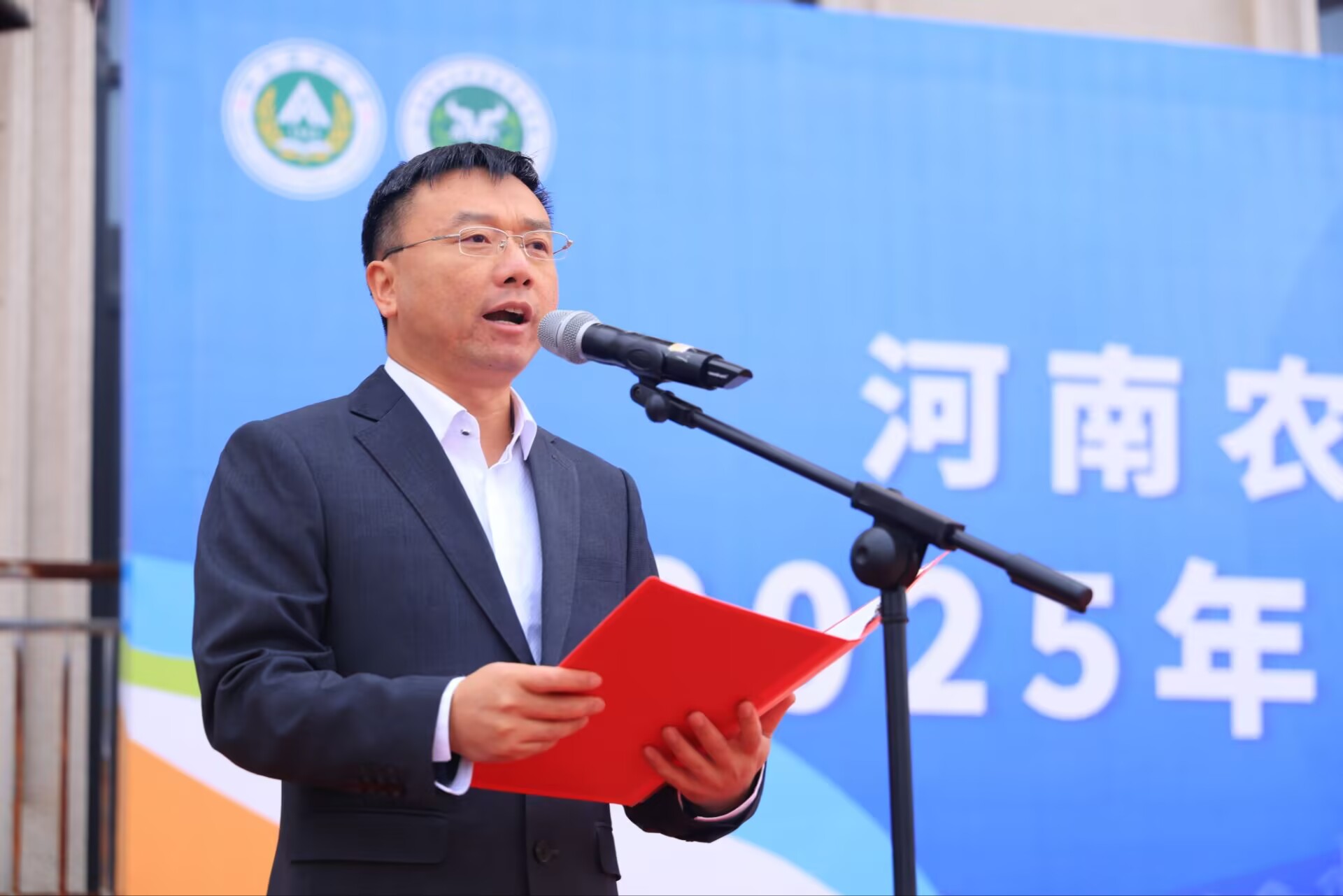 裁判员代表成敬斋老师、运动员代表23级动科1班林怡博同学分别宣誓。