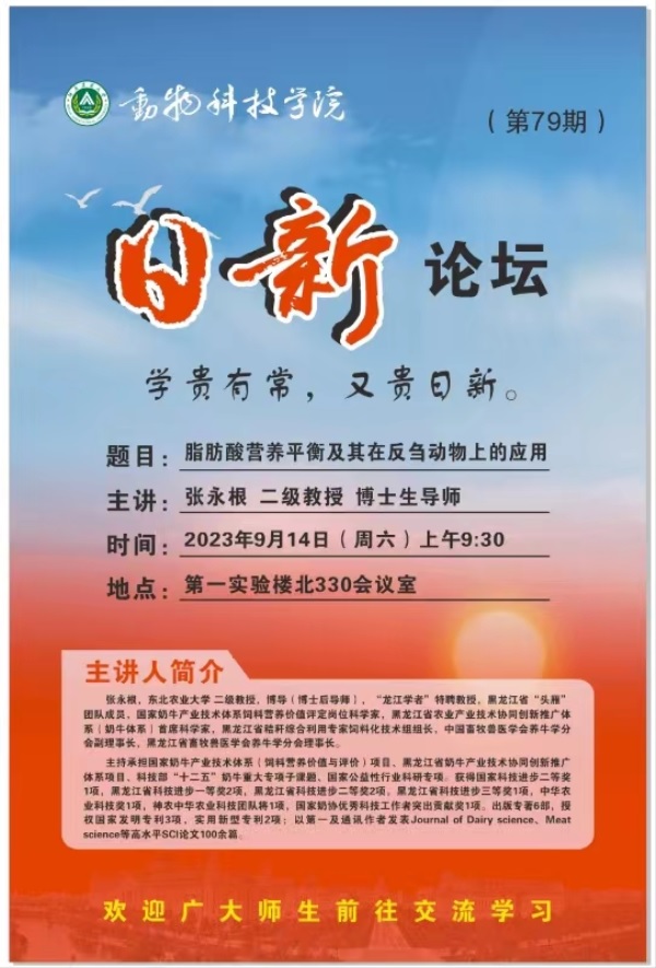 东北农业大学张永根教授将做客黄网“日新论坛”(第79期)