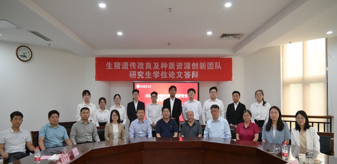 2024年5月25日,黄网生猪遗传改良及种质资源创新团队成功举办了2024届硕士研究生学位论文答辩会。本次答辩会特别邀请西北农林科技大学孙超教授担任答辩委员会主席,华中农业大学朱猛进教授,南京农业大学李平华教授,生猪团队李新建教授、李春丽教授、韩雪蕾教授、乔瑞敏教授、王克君教授、李秀领副教授担任答辩委员会委员。答辩委员会秘书由余彤博士和柏峻博士组成。
