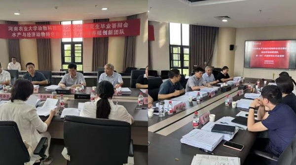研究生论文答辩的要求和程序进行,依次完成各位导师介绍答辩的个人情况、汇报PPT、专家提问等环节。水产与经济动物特色性状解析与高效养殖创新团队的15名2025届硕士研究生,分别从选题背景、研究的材料与方法、研究内容、研究结果、创新点及未来展望等方面,向各位答辩专家汇报硕士期间的科研工作情况。答辩专家们认真聆听汇报,仔细阅读论文,并针对论文选题依据、研究成果、专业能力、书写规范和陈述水平等方面进行了提问,全面考察了毕业生的专业知识掌握程度及综合素养,并提出了宝贵的意见和建议,以进一步提升研究生论文的质量水平。参与答辩的同学们认真记录专家们的提问并在充分思考后从容回答,表示将对论文进行进一步修改和完善。答辩现场气氛严肃而融洽、紧张而有序。