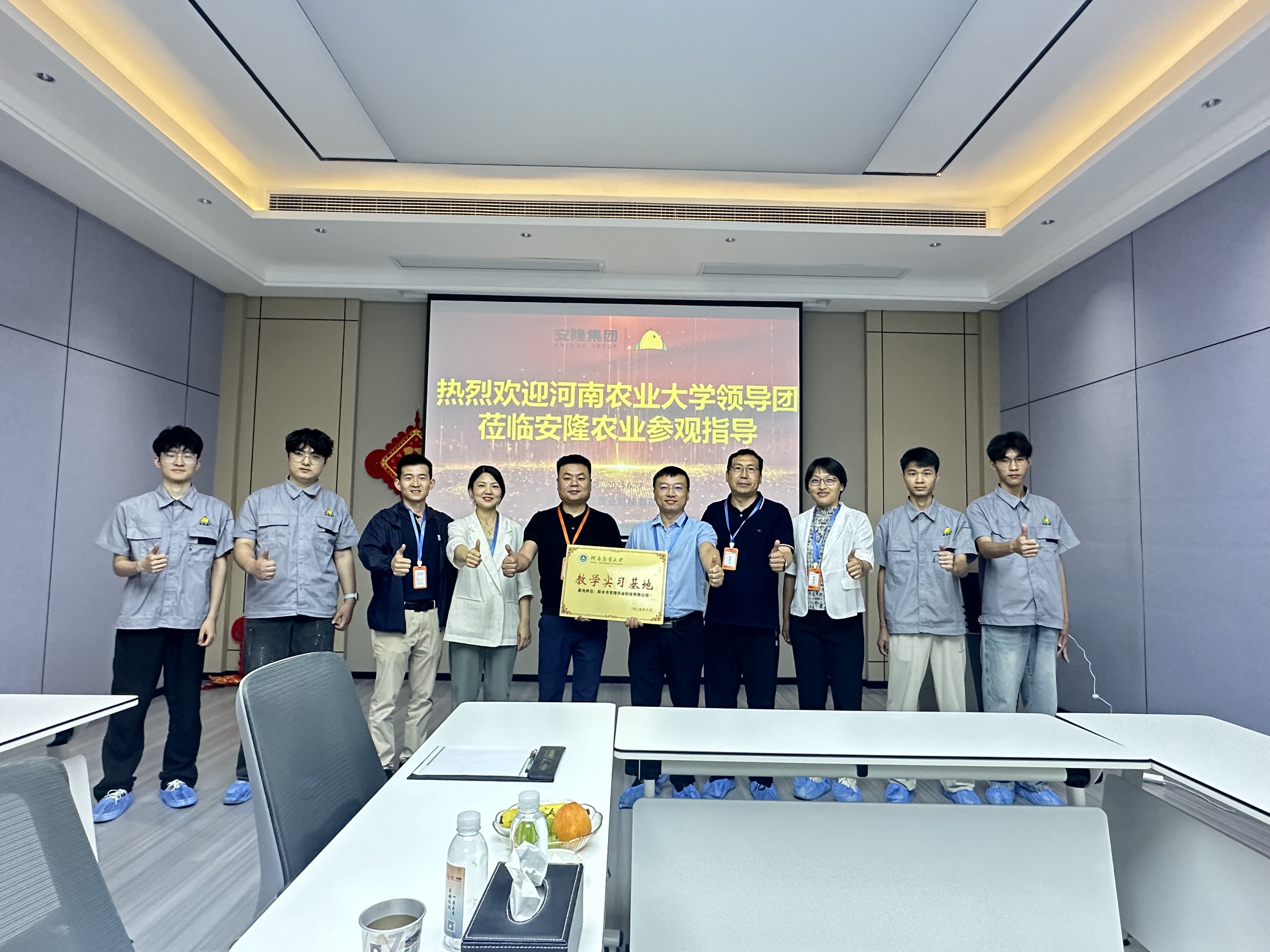 本网讯(通讯员 张彦华)为深入了解2022级动科专业本科生实习情况,加强校企技术交流和人才培养,探索企业院校产教研融合新模式,6月27-28日,科技处副处长田亚东、副院长李转见、农大牧原联合产业研究院副院长蒋瑞瑞,指导教师李东华、张彦华、鲁煜建一行赴安隆农业科技有限公司和漯河阳光禽业进行调研并看望实习学生。