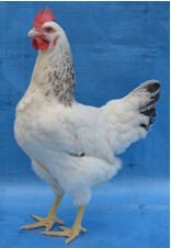 H系:雏鸡公、母鸡均为快羽,黄胫、灰白羽,背、颈、翅带黑斑;成年公、母鸡均为正常型,黄胫、少量白胫,浅芦花羽(哥伦比亚羽色),单冠、黄白皮肤,蛋壳颜色为褐色。