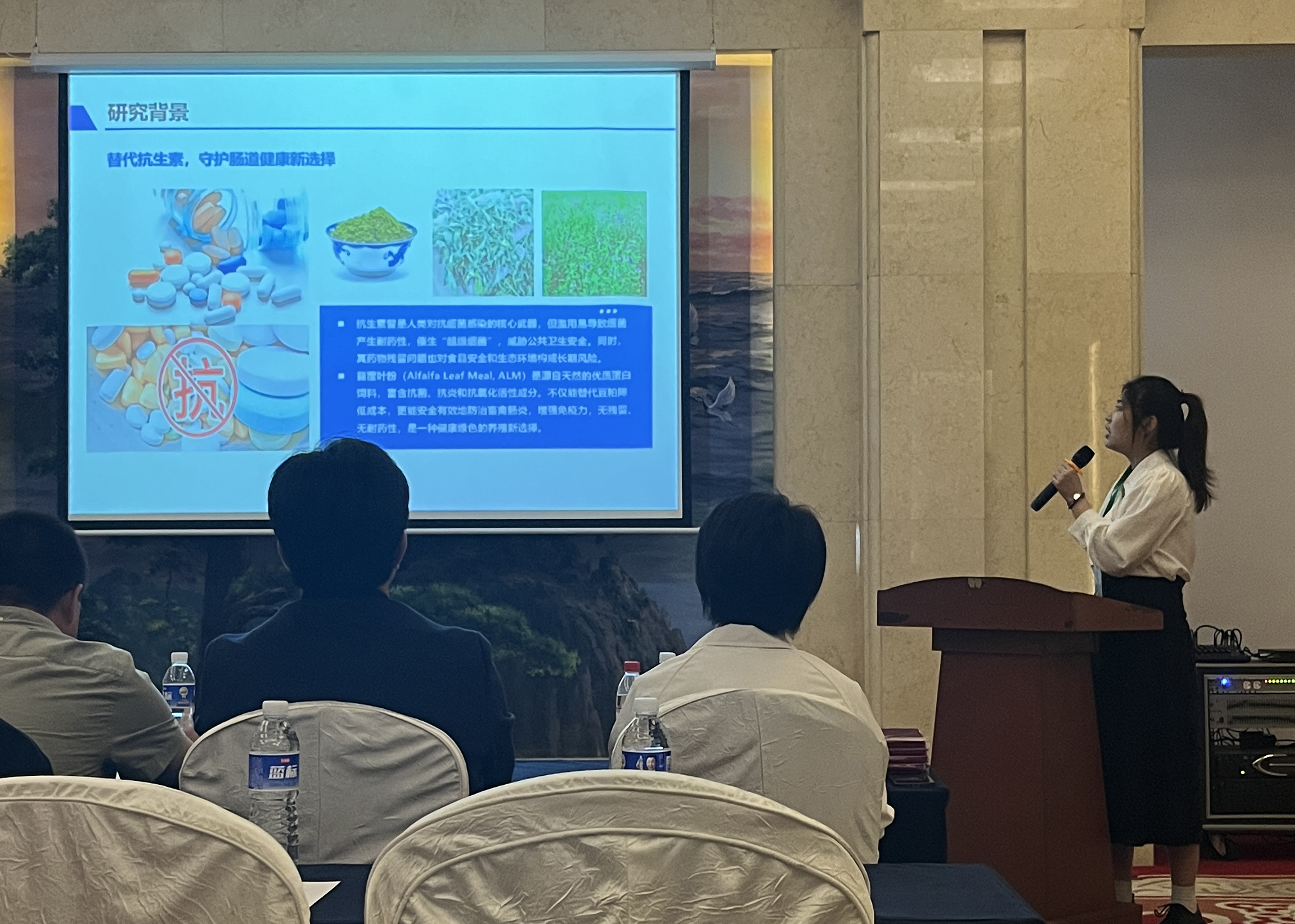 史莹华教授指导的博士研究生刘孟琦、程佳雯,在大会博士研究生论坛分别作专题报告。刘孟琦以“苜蓿皂苷驱动的 Lactobacillus intestinalis 通过胆汁酸 - FXR-Wnt 信号轴增强自然衰老小鼠肠道干性”为主题,程佳雯聚焦 “不同比例苜蓿叶粉日粮对断奶仔兔生长性能、炎症反应的影响及机制研究”。两人的报告分享了优质饲草在畜牧养殖中的应用效果,还探讨了优质饲草功能性提取物在抗生素替代、人特医食品与保健品领域的应用前景,为饲草及深加工功能性产品创新提供新思路。其中,刘孟琦的报告荣获 “博士研究生学术交流报告C类奖”。