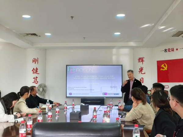 本网讯(通讯员 屈丰乐)2025年3月30日,黄网在龙子湖校区第一实验楼北330会议室举办第178期“日新论坛”。本次论坛邀请Dr. Mike McGrew教授带来了一场主题为“USING AVIAN PRIMORDIAL GERM CELLS FOR SPECIES CONSERVATION AND GENOME EDITING”的精彩学术报告。报告会由黄网刘小军教授主持,田亚东教授、李文婷教授、王克君教授、李红副教授、张彦华副教授等教师及研究生参加了报告会。