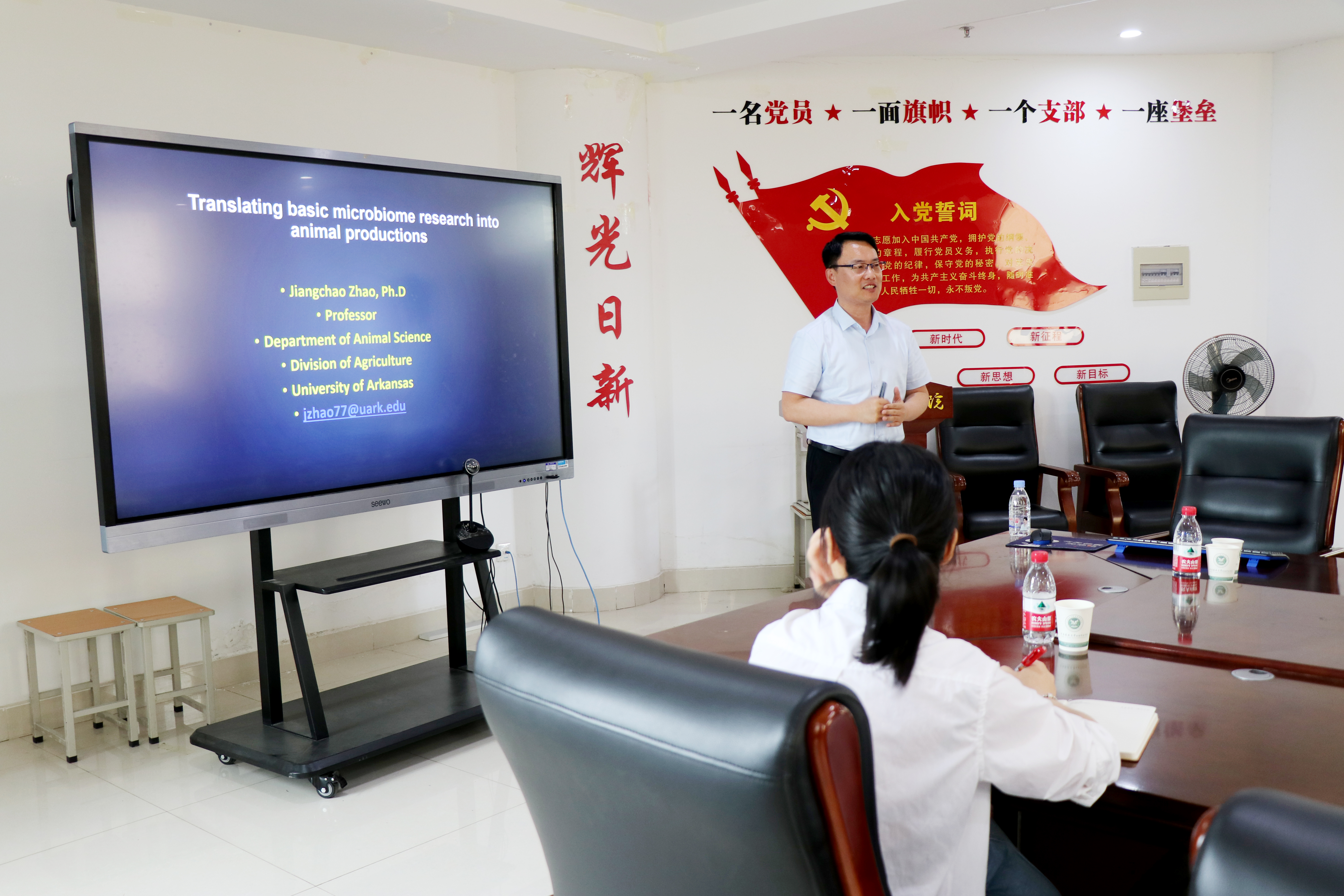 本网讯(通讯员:刘伯帅),6月13日下午,黄网在龙子湖校区第一实验楼北330会议室举办第73期“日新论坛”学术交流活动。美国阿肯色大学动物科学系赵江潮教授受邀为主讲嘉宾,黄网