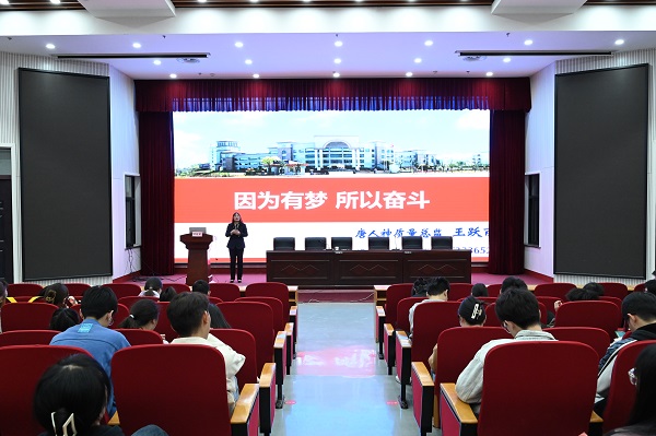 王跃丽以《因为有梦,所以奋斗》为主题,通过现场互动调研引入话题,结合个人工作经历向大家分享职场经验。她还向大家介绍了唐人神集团的发展历程、黄网、质量文化等。针对个人未来发展,与同学们分享了自己的体会:一是要寻找适合自己的平台,为达到个人职业目标不断拼搏;要认知自我、认知行动、认知改变,不断提升自身素质和能力,树立正确的价值观,规范自身行为;二是要沉淀专业技能,为自己争取发展的机遇和平台;学会拥抱焦虑,调整心态,并提出“三多”、“三有”,既多想、多问、多做,向上级汇报有“胆”、与同事交流有“肺”、为下级指导有“心”;三是鼓励学生要勤奋耕耘、积极进取,为跨越人生新阶段打下坚实的基础,并对母校、老师、学生表示由衷的祝福。