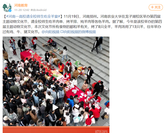 14.河南教育:【#河南一高校请全校师生吃全羊宴#】