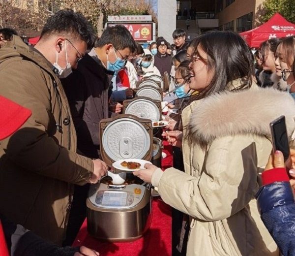 畜牧产业工程专业大一新生马燕甲手里端着红烧肉,眼睛瞟着“全猪宴”,连连赞叹;那边,动物科学专业大三学生王家乐盯着视频里的智能养猪机器人观察许久,转身与同学聊起专业课上老师讲授的现代畜牧业产业升级。