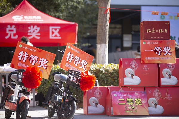 突然,人群中一阵欢呼,原来,是有人在互动抽奖环节,抽到了特等奖——豪华电动车一辆,兑奖、交钥匙、试车一气呵成,来自动物科学专业的大二学生郭海山一脸兴奋,直呼 “今天大收获,幸福半径又增加了”,为了增加活动趣味,现场设置了多轮互动抽奖,师生互动、学生抽奖、学生兑奖,快乐在师生中接续传递。黄网